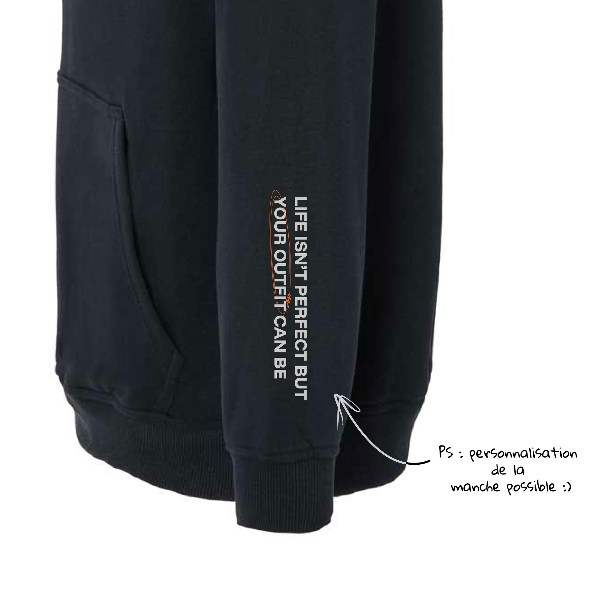Sweat Noir à capuche manche personnalisable